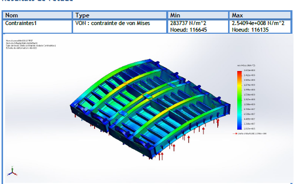 - Calculs par éléments finis : SolidWorks simulation, RDM7,
